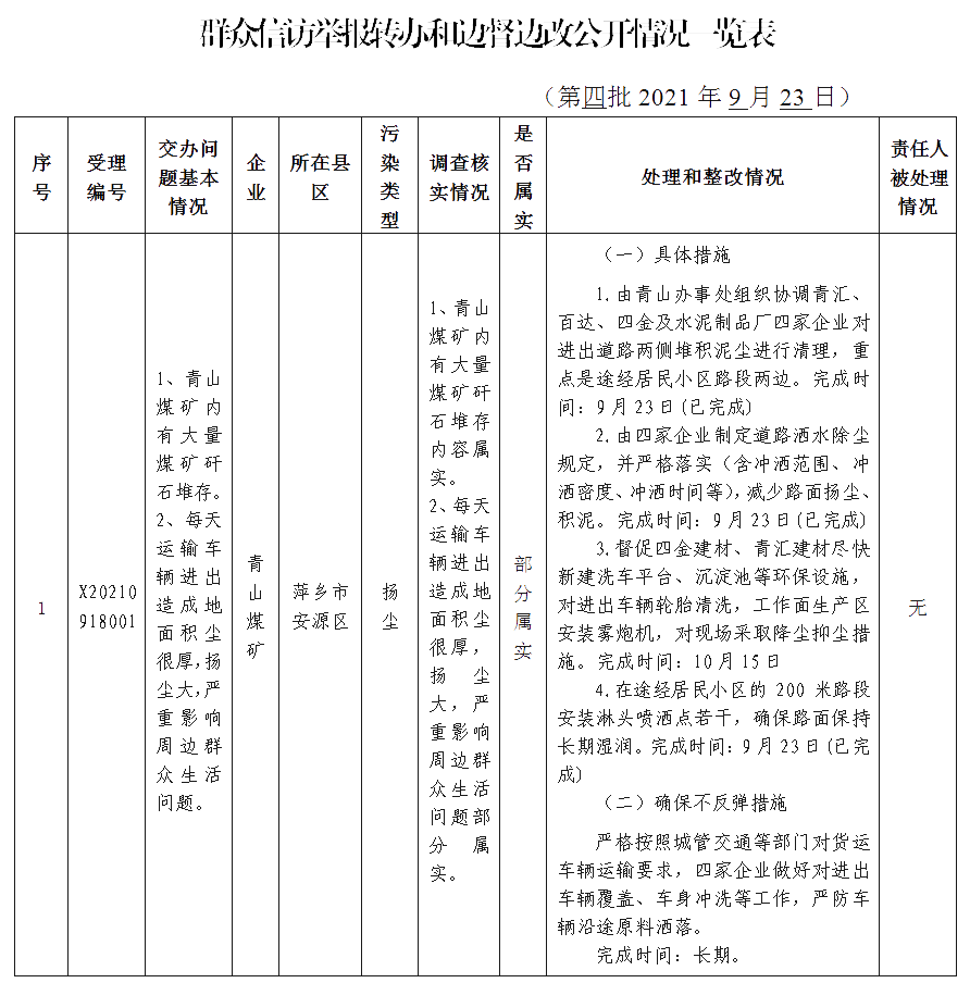 關于省環(huán)保督察信訪件反映青山煤礦有關問題公示