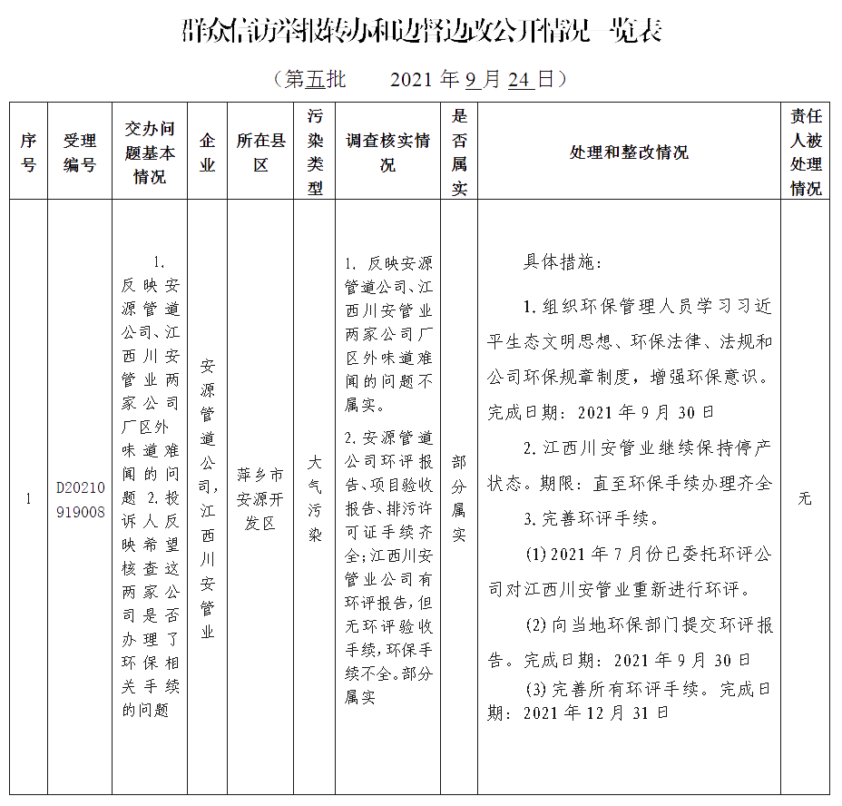 關于省環(huán)保督察信訪件反映安源管道有關問題公示