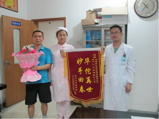 “我爸爸執(zhí)意要我們送來這面錦旗,是你們醫(yī)院挽救了他的生命,讓他重獲新生。”送來錦旗的老人的子女說。