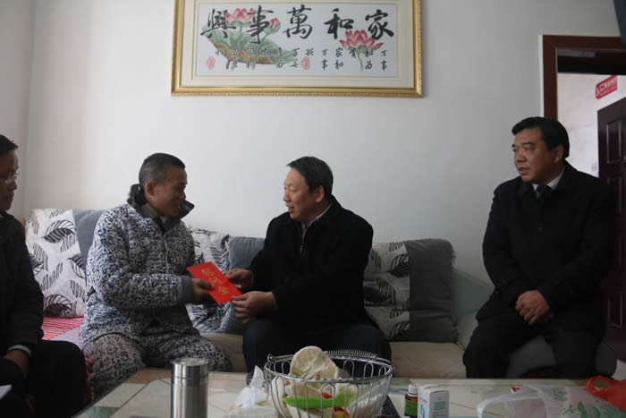 2月3日,萍鄉(xiāng)市委書記劉衛(wèi)平一行來到萍礦走訪慰問擁軍模范和困難職工,向他們噓寒問暖,送上慰問金,并致以新春的祝福。 劉衛(wèi)平到高坑煤礦看望了困難職工袁中優(yōu)和李樹強。袁中優(yōu)身患多種疾病,治病花銷大,家庭十分困難。劉衛(wèi)平關(guān)切地詢問他的病情和家庭生活情況,鼓勵他振作精神,勇敢面對困難,并要求企業(yè)盡量給予幫助。劉衛(wèi)平表示,政府的去產(chǎn)能專項資金將向萍礦傾斜,屆時,企業(yè)運行狀況好轉(zhuǎn),職工也將受益。隨后,劉衛(wèi)平來到李樹強家中,只見他家房屋破舊,其妻子全身癱瘓臥病在床,家庭十分困難。劉衛(wèi)平鼓勵李樹強積極面對困難,逐步解決困難,并仔細(xì)詢問其住房情況,要求有關(guān)單位務(wù)必解決好其住房問題。