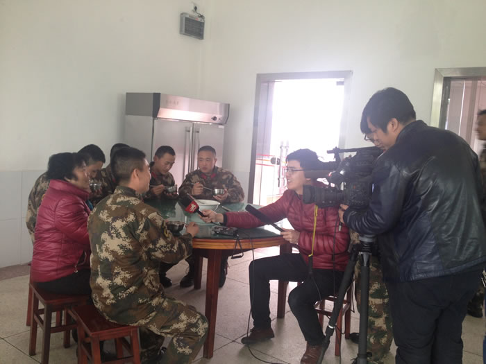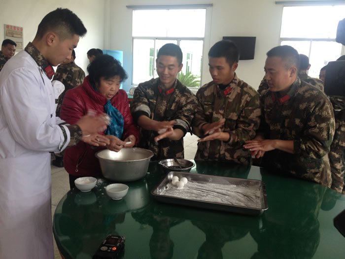 圖為陶艷萍手把手教戰(zhàn)士做湯圓。(謝紅英 攝)圖為《江西衛(wèi)視》的記者正在采訪陶艷萍和戰(zhàn)士。(謝紅英 攝)