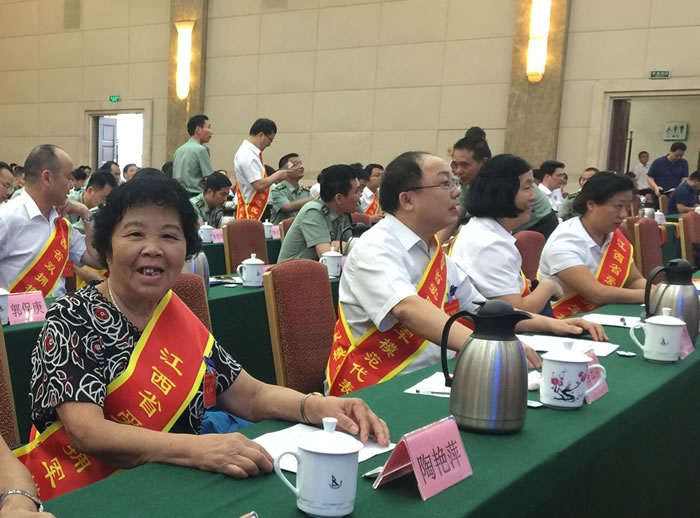圖為陶艷萍在江西省雙擁模范城(縣)命名表彰大會(huì)現(xiàn)場。
