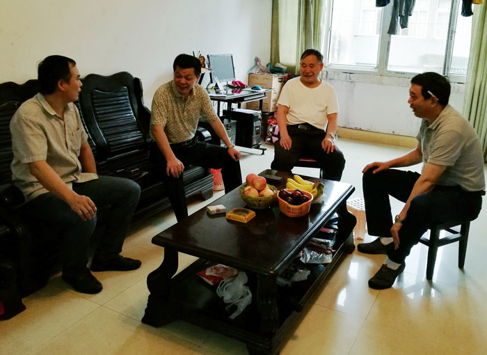 圖為集團(tuán)公司黨委書(shū)記吳培南(左二)與高坑礦困難黨員親切交談。賀亮才 攝