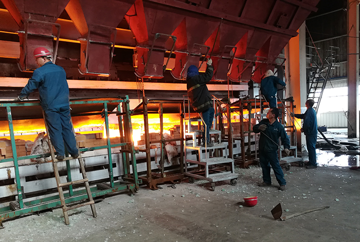 為圓滿完成冷修計劃,聯(lián)合車間干部職工緊盯工作進度,緊掐時間節(jié)點,加班加點忘我工作,連除夕和春節(jié)也在車間奮戰(zhàn)。錫槽需要調(diào)換130多塊槽底磚,錫槽工段長金勇和工人們一起拆除,堅硬結(jié)實的磚頭,得全部用鋼釬和風(fēng)鎬去撬,經(jīng)常是雙手酸痛,磨起血泡,吃飯時連筷子也拿不起來。盡管采用了新工藝,將原來人工用鏟子鏟料改為用溜槽放下去,但還是得用大鏟子去窯爐前推料。面對80多度的高溫炙烤,大家沒有退縮,按要求高質(zhì)量完成了任務(wù)!俺烁袆舆是感動,我們干部職工那種拼搏勁太令人感動了!眲⒅俱憹M懷感慨地說。