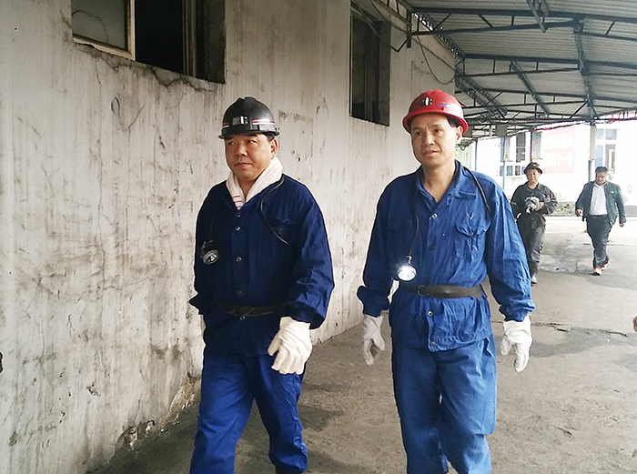 圖為林紹華(左)在白源煤礦督導(dǎo)。羅獻(xiàn)萍 攝