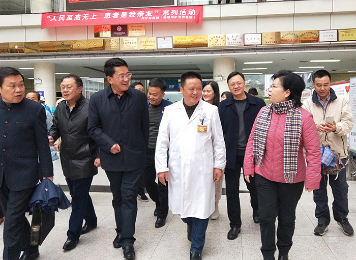 圖為聶曉葵(右一)在湘雅萍礦合作醫(yī)院實地督導文明創(chuàng)建工作。