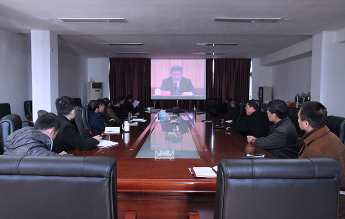 圖為萍礦集團(tuán)黨委中心組成員集中觀看大會盛況。