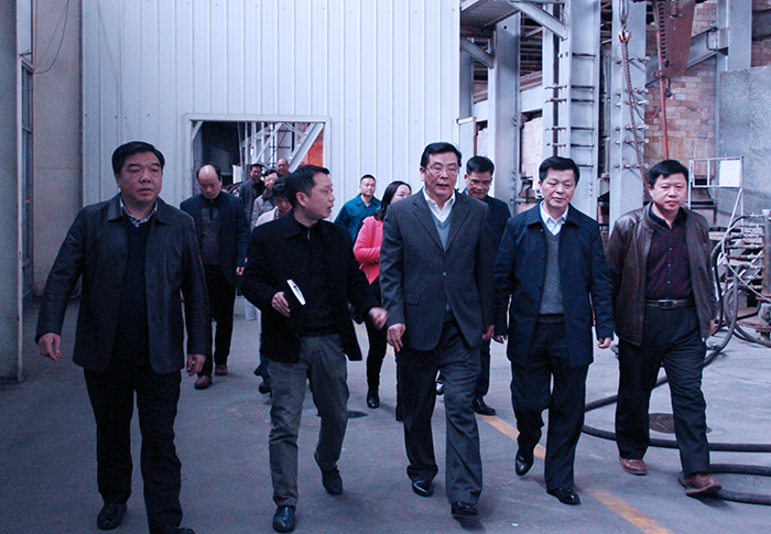 圖為曾昭和(左三)深入浮法玻璃廠生產(chǎn)車間現(xiàn)場調(diào)研生產(chǎn)情況。周建生 攝