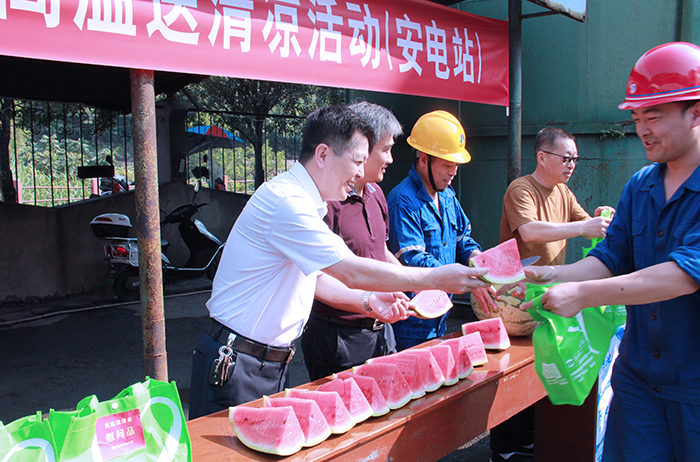 “辛苦了,現(xiàn)在天氣炎熱,大家要多注意安全和身體……”一句句樸實(shí)、暖心的話語,就像一陣陣涼爽的清風(fēng),沁入奮戰(zhàn)在高溫酷暑一線的萍礦干部職工心坎上。 連日高溫,酷熱難耐。8月6日—7日,萍礦集團(tuán)領(lǐng)導(dǎo)吳培南、劉智明、徐建軍、江蘇波、徐松明分成兩組,先后來到浮法玻璃廠、安源發(fā)電廠,安源管道公司和萍礦工程公司項(xiàng)目現(xiàn)場(chǎng),深入生產(chǎn)車間、施工工地開展高溫送“清涼”活動(dòng),讓大家真切感受到了企業(yè)大家庭的溫暖。 每到一處,萍礦集團(tuán)領(lǐng)導(dǎo)都詳細(xì)了解干部職工作業(yè)環(huán)境、勞動(dòng)強(qiáng)度等情況,為他們送去防暑降溫物品和西瓜,更送去了夏日的一片“清涼”。他們還特別叮囑各單位負(fù)責(zé)人要多關(guān)心職工的工作和生活,尤其是現(xiàn)在正處于高溫季節(jié),要認(rèn)真做好防暑降溫工作,把防暑降溫措施落實(shí)到位,確保職工安全度夏,真正做到有序生產(chǎn)、安全生產(chǎn)。 在浮法玻璃廠,萍礦集團(tuán)黨委書記、董事長、總經(jīng)理吳培南親切地握著當(dāng)班職工的手,語重心長地提醒他們注意安全、注意防暑。在窯頭投料口,吳培南詳細(xì)了解了當(dāng)天的安全、生產(chǎn)情況,并不顧窯頭100多度高溫,拿著觀察鏡片仔細(xì)、認(rèn)真地觀察了窯內(nèi)火焰燃燒情況。 “現(xiàn)在你們廠因洗渣原因,影響發(fā)電,大家要在確保安全的前提下,齊心協(xié)力攻堅(jiān)克難,全力保生產(chǎn)保發(fā)電!痹诎苍窗l(fā)電廠,吳培南有說有笑地與當(dāng)班職工親切交談。“我是運(yùn)行車間的,他是維修車間的。目前我們雖然有一些困難,但我們將一如既往地堅(jiān)守崗位、履職盡責(zé),只求企業(yè)能盡早脫困。謝謝領(lǐng)導(dǎo)對(duì)我們一線員工的關(guān)心! 職工們一邊吃著西瓜,一邊表著決心。 據(jù)悉,此次崗位送“清涼”活動(dòng)共發(fā)放了522份防暑降溫物品至上述單位以及武功山休閑旅游公司的高溫崗位人員。