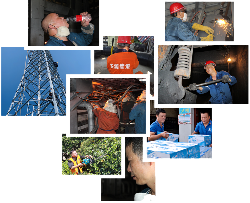 進入三伏天以來,萍鄉(xiāng)迎來了持續(xù)的晴熱高溫天氣,處處上演著“燒烤模式”和“蒸煮模式”。 烈日下、高溫中,萍礦人是如何堅守陣地、經(jīng)受“烤驗”的?近日,江西安源工人報社記者分別走進酷暑中默默奉獻的勞動者中,用鏡頭和筆觸記錄他們那份對企業(yè)的責(zé)任和對職業(yè)的尊重。 浮法玻璃廠保窯工—— 1500℃窯爐旁的堅守者 工作在超1500℃的窯爐旁,車間溫度也經(jīng)常超70℃,還要穿著厚厚的防護服,戴著防護帽和厚手套,在普通人難以想象的高溫環(huán)境下,浮法玻璃廠的保窯工,一年四季這樣作業(yè)。 “每次操作我們5分鐘左右就要出來喘口氣、降下溫,時間長了根本受不了!” 7月29日上午,浮法玻璃廠聯(lián)合車間熔化工段熱浪襲人,更換噴嘴磚工作正在火熱進行,一名保窯工帶著滿身炙熱鉆出小爐過道對記者說。 當(dāng)天,該廠玻璃窯爐南邊過道人頭攢動,在1米余寬狹窄的南邊1#小爐過道里,與其一墻之隔的窯爐溫度高達近1600℃,現(xiàn)場環(huán)境溫度也超過100℃,五名保窯工默契配合,搶抓人體耐高溫時間緊張操作。只見一名保窯工使勁抬起鐵棍;一名保窯工高舉鐵錘用力敲,取下邦磚頂鐵和固定件;短短幾分鐘,他們的防護服就全濕透了,整個人就跟被火烤了一樣?釤犭y耐,他們幾分鐘一換,輪番作戰(zhàn)。奮戰(zhàn)近2個小時,他們順利將噴嘴磚更換完畢,而褲腿里的汗,就象流水一樣地淌出來! 安源管道公司安裝工—— 滿頭汗、全身濕,細(xì)心雕琢每一寸安全 高溫酷暑,氣溫悶熱,在四川樂山市福華通達農(nóng)藥科技公司項目施工現(xiàn)場,經(jīng)?梢娨粋個滿頭大汗、全身濕透的身影,他們就是堅守一線的安源管道公司技術(shù)服務(wù)部安裝工。 管道安裝工長年征戰(zhàn)各地,經(jīng)常是“滿身土、兩腳泥”,高溫中更是“滿頭汗、全身濕”。這次的項目,他們自今年6月中旬開始安裝,共需安裝3200個電熔套。每個電熔套需要進行打磨、組裝、焊接,工序繁瑣。烈日下,他們一絲不茍地操作著每一道工序,切割、運送、綁扎、安裝螺絲……豆大的汗珠從他們飽經(jīng)風(fēng)霜的臉頰上滑落,衣服也濕透了,粘在身上很不舒服,但他們絲毫顧不上這些,仍然手握工具專心致志地忙活。 迎著朝陽出發(fā),踏著月光返程,這是管道安裝工的真實寫照。正是由于他們?nèi)諒?fù)一日、熱力不減的辛勤付出, 細(xì)心雕琢著每一寸安全,才換來了一個又一個優(yōu)質(zhì)項目,讓企業(yè)在前進的道路上行穩(wěn)致遠。 月池礦泉水公司業(yè)務(wù)員—— “我希望每天都是三十七八度” 盛夏時節(jié),早上8點的太陽便曬得人發(fā)慌。迎著這樣的高溫,月池礦泉水銷售分公司業(yè)務(wù)員便開始了一天的工作——把礦泉水裝上三輪車,再騎著這輛車穿街走巷,把礦泉水送到萍城的各個角落。 夏天是月池水的銷售旺季,訂單多的時候,他們一天要送二三十個點,一天下來大概要送800件瓶裝水,量大的點一次便需要送700件。忙不過來的時候,銷售分公司所有業(yè)務(wù)員都要出門配送貨物。 早上8點上班,從公司裝車后,大家便紛紛出發(fā),一車貨送完了再回公司裝第二車,平常一天下來得來回六趟。除了午飯后有短暫的休息時間,一天約有7個小時需要在馬路上接受最直接的火熱“烤驗”。 剛裝好一車礦泉水的銷售分公司經(jīng)理吳志輝,就已經(jīng)被汗水“洗了臉”。旁邊的同事說,大家來上班都會帶三件可以輪換的T恤衫,送完貨回來濕透了方便換一件。裝好車的吳志輝在出發(fā)前帶上了兩瓶提前準(zhǔn)備好的冰水,隨后又裝滿兩瓶水放進了冰箱中。隨后,他坐上了三輪車,將月池水送往上栗縣楊岐山管委會,一趟來回需要兩個多小時。天氣雖熱,但他卻顯得尤為開心:“天越熱,汗出得越多,水就賣得越好,你說這個汗大家出得高不高興?我希望每天都是三十七八度就好!” 安源發(fā)電廠一線工人—— 缺條件不缺精神、減人員不減斗志 2020年對安源發(fā)電廠來說,是極為不平凡的一年。這一年,新冠肺炎來勢洶洶,企業(yè)面臨嚴(yán)峻挑戰(zhàn);這一年,企業(yè)全面優(yōu)化勞動組織,人員越發(fā)緊缺;這一年,企業(yè)逐步走向盈利,呈現(xiàn)多年未見的好勢頭。 缺條件不缺精神、減人員不減斗志,正是因為全廠干群干勁十足、攻堅克難,才實現(xiàn)了扭虧保效。這不,最近該廠化驗室鈉離子交換器因使用時間過長,出現(xiàn)底部滲漏現(xiàn)象,如更換新的交換器,價格不菲。維修車間立即安排人員,將一個老舊底部卻保存完好的交換器進行氧焊切割。維修人員不懼高溫,站在五六米高的高空,仰著頭、懸著手,忙了近兩個小時,最終完成了交換器的底部更換,不僅解決了滲漏問題,還節(jié)約了購買新設(shè)備的成本,而他們操作時連擦汗都騰不出手。焊花點點,點亮的是不一樣的人生焰火。 該廠運輸車間8#、6#皮帶,是電煤的重要傳輸崗位,卻又是工作環(huán)境最艱苦的地方。因不通風(fēng),溫度更是長年保持在40℃以上,灰塵又大。特別是在6#皮帶尾,皮帶一開,上面不能停煤,下面不能堵斗,相當(dāng)于一個人要管兩個崗位。一班下來,在狹小、高溫的空間來回跑動,衣服就沒有干爽的時候。盡管每天一身黑、一身濕,他們眼里的那種堅毅卻絲毫未減。 萍礦工程公司外線工—— 超常毅力戰(zhàn)“三高” 萍礦工程公司電力分公司有70%職