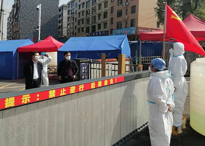 緊接著,吳培南來到硤石小區(qū),看望慰問堅守在該小區(qū)抗疫一線的萍礦城市服務(wù)公司物業(yè)服務(wù)人員,要求他們必須時刻繃緊疫情防控這根弦,堅持“外防輸入、內(nèi)防反彈”總策略,嚴格落實各項防控措施,全力保障居民的身體健康和生命安全。