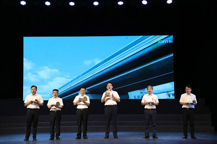 集團優(yōu)秀黨員代表、中層管理人員代表、優(yōu)秀黨務工作者代表先后登臺,深情誦讀《黨的二十大報告學習輔導百問》《習近平新時代中國特色社會主義思想學習綱要》《論黨的自我革命》等原著中,關于“新時代新征程中國共產黨的使命任務”“加快構建新發(fā)展格局,著力推動高質量發(fā)展” “堅定不移全面從嚴治黨,深入推進新時代黨的建設新的偉大工程”精選內容。誦讀者或豪邁奔放、或溫婉多情的演繹,呈現(xiàn)出一場愛黨愛國的視聽盛宴,展現(xiàn)了集團黨員干部昂揚向上的精神面貌和踐行初心使命的堅定信心。