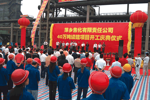 彩旗飄揚(yáng),鑼鼓喧天。10月8日上午,萍鄉(xiāng)焦化公司40萬噸續(xù)建項(xiàng)目開工慶典儀式在萍焦廠區(qū)隆重舉行。