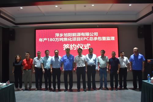 8月1日,萍鄉(xiāng)旭陽年產180萬噸焦化項目EPC總承包暨全過程咨詢服務簽約儀式在湘東廷泊酒店舉行。萍礦集團黨委副書記、總經(jīng)理,萍鄉(xiāng)旭陽能源董事長漆云飛;旭陽集團工程管理部總經(jīng)理齊擁軍;河北安裝工程公司副總經(jīng)理祝立輝;中鼎國際黨委書記、董事長趙桂生;旭陽工程科技公司常務副總經(jīng)理湯明偉;同濟建管黨委書記、董事長謝冬春,總經(jīng)理何祥國;萍鄉(xiāng)旭陽能源總經(jīng)理楊俊杰等共同見證簽約。