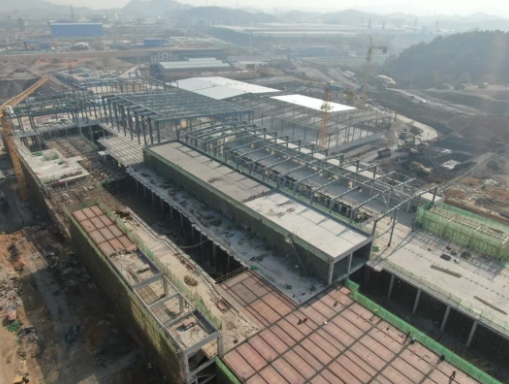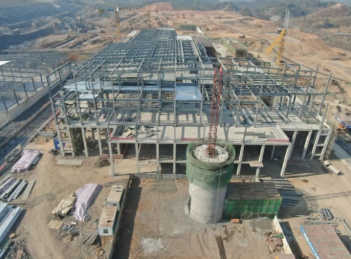 綜合原料庫:基礎(chǔ)工程完成100%,鋼結(jié)構(gòu)吊裝完成100%,地坪工程完成78%。 原料車間:基礎(chǔ)工程完成100%。