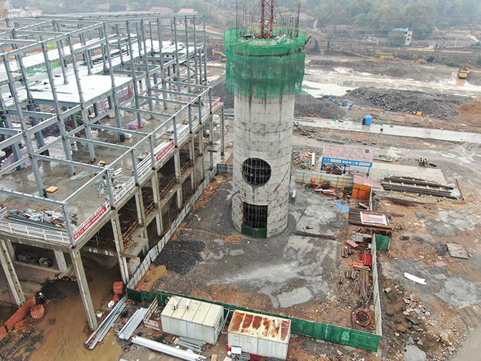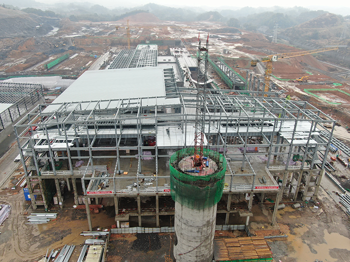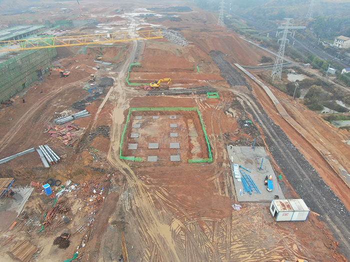 煙囪:基礎工程完成,主體工程完成25%。 成品工段:獨立基礎工程完成75%,擋土墻完成20%。 裝箱工段:獨立基礎工程完成25%。 均化庫:獨立基礎完成25%。