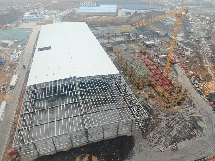 綜合原料庫:基礎工程完成,鋼結構吊裝完成90%,地坪工程完成90%。 原料車間:基礎工程完成,主體工程完成16%。