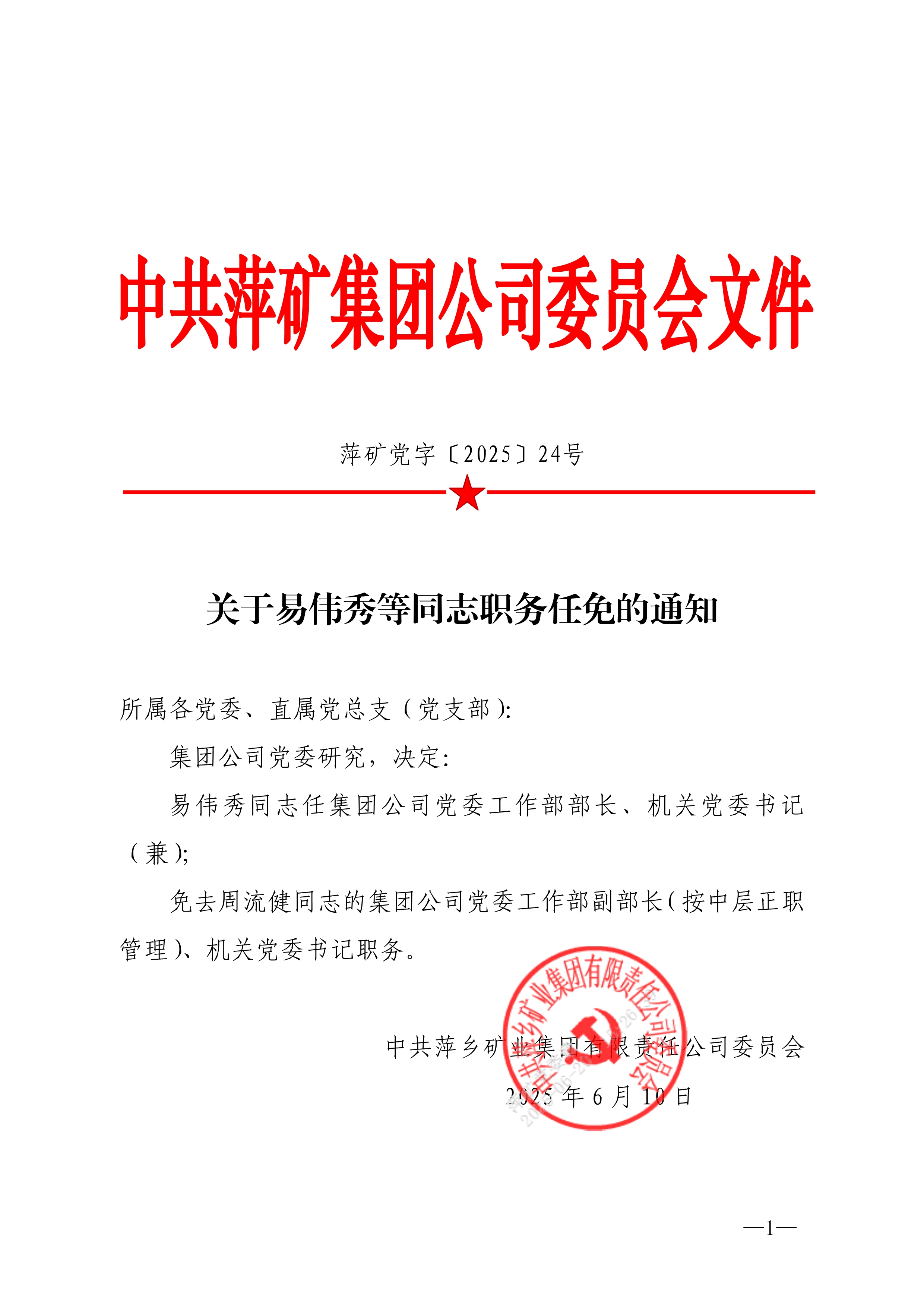 關(guān)于易偉秀等同志職務(wù)任免的通知