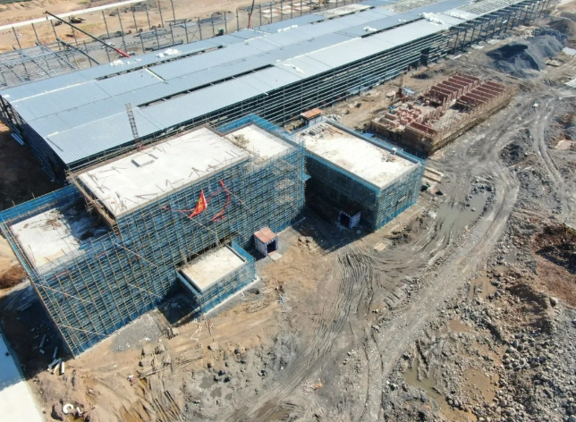 成型工段:700噸生產(chǎn)線車間鋼結(jié)構(gòu)完成98%,500噸生產(chǎn)線鋼結(jié)構(gòu)完成94%。