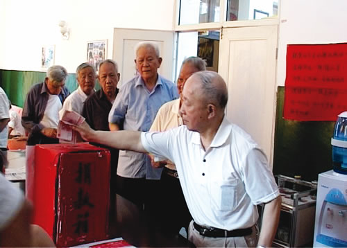在支援抗震救災(zāi)的義捐活動中,離退休老同志的行為值得稱道。安源礦有7位退休職工分別向災(zāi)區(qū)捐款1000元,70歲的老黨員溫發(fā)云本打算5月中旬去北京旅游,汶川地震發(fā)生后,他取消旅游計劃,把用于旅游的1000塊錢捐給了災(zāi)區(qū)。許多老同志躺在病榻上仍心系災(zāi)區(qū),念念不忘要為災(zāi)區(qū)人民盡一份綿薄之力。退休老干部李繼武股骨頭壞死,剛從北京治病回來,就一跛一拐地來到機關(guān)退休工作站捐上500元。90多歲的高蘭亭老人每月靠240元撫恤費生活,也從微薄的收入中拿出100元錢捐給災(zāi)區(qū)。