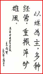 陜西省省長(zhǎng)(原萍鄉(xiāng)礦務(wù)局局長(zhǎng))程安東題詞