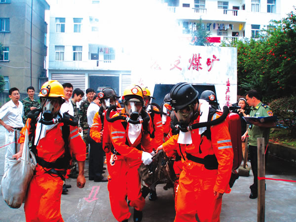 6月23日上午,萍礦救護大隊的場地上熱鬧非凡,應急演練正在這里舉行,來自全公司的8個救護隊和2個醫(yī)療組共200多人參加了預案演練。救護隊員們進行了軍事化隊列操練,開展了上述礦井火災區(qū)偵查救人、蘇生急救及架木棚作業(yè),體現(xiàn)了萍礦應急救援隊伍的建設水平、快速反應和應急處置能力。