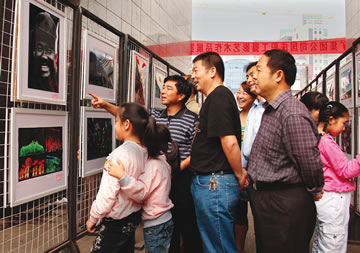 國(guó)慶期間,集團(tuán)公司工會(huì)、文聯(lián)舉辦了萍礦集團(tuán)公司國(guó)慶職工攝影藝術(shù)作品展。這次共展出作品120幅,是公司廣大攝影愛(ài)好者最新作品,反映了礦區(qū)職工家屬生產(chǎn)生活、安全文化建設(shè),以及祖國(guó)壯麗河山、民族風(fēng)情等。左圖為省煤集團(tuán)公司黨委副書(shū)記、紀(jì)委書(shū)記劉國(guó)清和萍礦集團(tuán)公司黨委副書(shū)記、紀(jì)委書(shū)記吳耀純,下圖為萍礦集團(tuán)公司黨委副書(shū)記、工會(huì)主席黃建明(中)在觀看展覽。(袁鵬 黃興波攝)