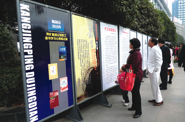 據(jù)悉,高礦杯”萍礦集團(tuán)公司職工讀書(shū)活動(dòng)自今年4月份開(kāi)展以來(lái),已取得明顯成效。讀書(shū)活動(dòng)倡導(dǎo)“看精品、讀經(jīng)典”,增強(qiáng)了職工的讀書(shū)興趣,形成了良好的讀書(shū)氛圍,截止11月,各級(jí)工會(huì)共征集讀書(shū)心得筆記700余篇。本次展覽精選了18篇讀書(shū)心得體會(huì),希望給廣大職工帶來(lái)一次書(shū)香的體驗(yàn),通過(guò)“看精品,讀經(jīng)典”,促進(jìn)企業(yè)文化建設(shè),推動(dòng)職工思想素質(zhì)和工作業(yè)務(wù)能力的提高,為“創(chuàng)建學(xué)習(xí)型企業(yè),爭(zhēng)做知識(shí)型職工”打下堅(jiān)實(shí)的基礎(chǔ)。11月29日至12月6日,展覽還將下到各礦及焦化公司、電力公司、湘雅萍礦合作醫(yī)院等單位展出。(李雅君 單偉 攝)