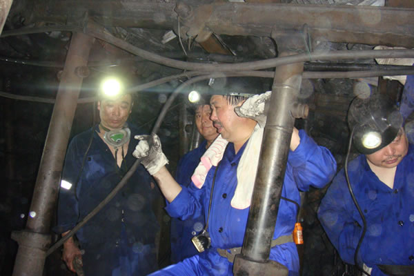 在井下,魏建明一路查看安全設(shè)施和巷道布置,一路詢(xún)問(wèn)生產(chǎn)組織情況,聽(tīng)取白源礦黨政領(lǐng)導(dǎo)的匯報(bào)。進(jìn)入今年以來(lái),白源礦井下地質(zhì)條件發(fā)生根本性變化,大部分采區(qū)都只能對(duì)煤質(zhì)差的老墟進(jìn)行復(fù)采,因而煤炭回收率低,由于在崗人員老化、離退休和出國(guó)務(wù)工等因素影響,造成井下一線(xiàn)生產(chǎn)勞動(dòng)力不足。加上比去年多出一倍的開(kāi)拓進(jìn)尺工程和巷道修理工程量等因素的影響,嚴(yán)重制約經(jīng)濟(jì)效益的發(fā)揮,生產(chǎn)效益面臨巨大壓力。魏建明對(duì)白源礦不畏困難,夾縫找煤求生存的精神和向質(zhì)量標(biāo)準(zhǔn)化要安全的責(zé)任感給予了充分肯定。