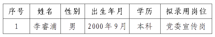 江西月池天然礦泉水有限公司擬招聘錄用人員公示